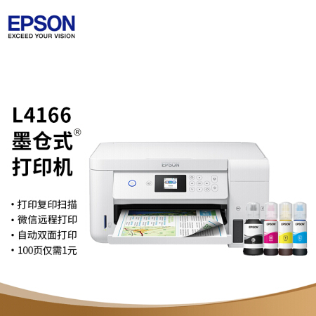 愛普生(EPSON)墨倉(cāng)式品質(zhì)款L4166(優(yōu)雅白) 微信打印/無線連接 打印復(fù)印掃描一體機(jī)