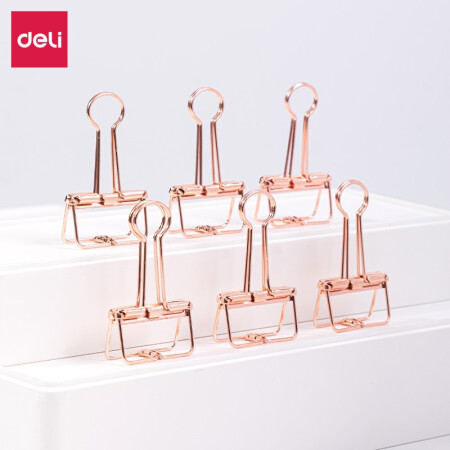 得力 deli 6只32mm玫瑰金鏤空票夾長(zhǎng)尾夾 辦公票夾時(shí)尚燕尾夾